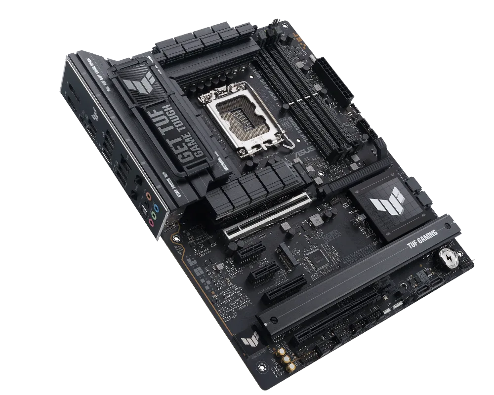 Robust Power Solution: 16+1+2+1 80A DrMOS power stages with ProCool power connectors, 8-layer PCB, alloy chokes and durable capacitors for stable power delivery